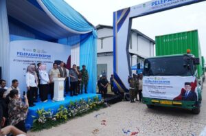 Sumsel Merdeka – Banyuasin, Menteri Perdagangan RI, Dr. Budi Santoso, M.Si., secara resmi melepas ekspor perdana pakan hewan peliharaan yang