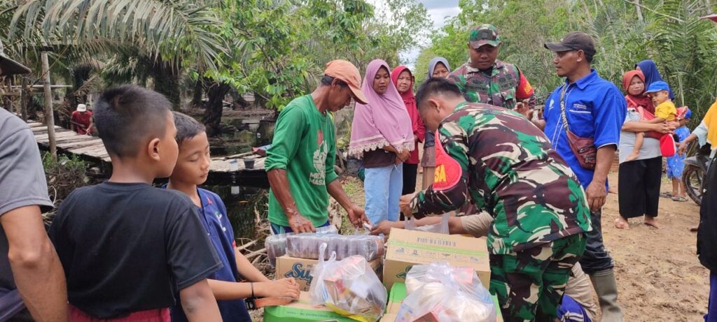 Sumsel Merdeka – Muba, Personil Babinsa kecamatan Sanga Desa Koramil 02/Babat Toman Kodim 0401/Musi Banyuasin di pimpin Serma Suwardiyono melaksanakan kegiatan penyaluran bantuan sembako kepada warga yang terdampak banjir luapan dari Sungai Musi di Trans SP2, Desa Air Balui, Kecamatan Sanga Desa, Kabupaten Musi Banyuasin, Senin (29/04/2024).