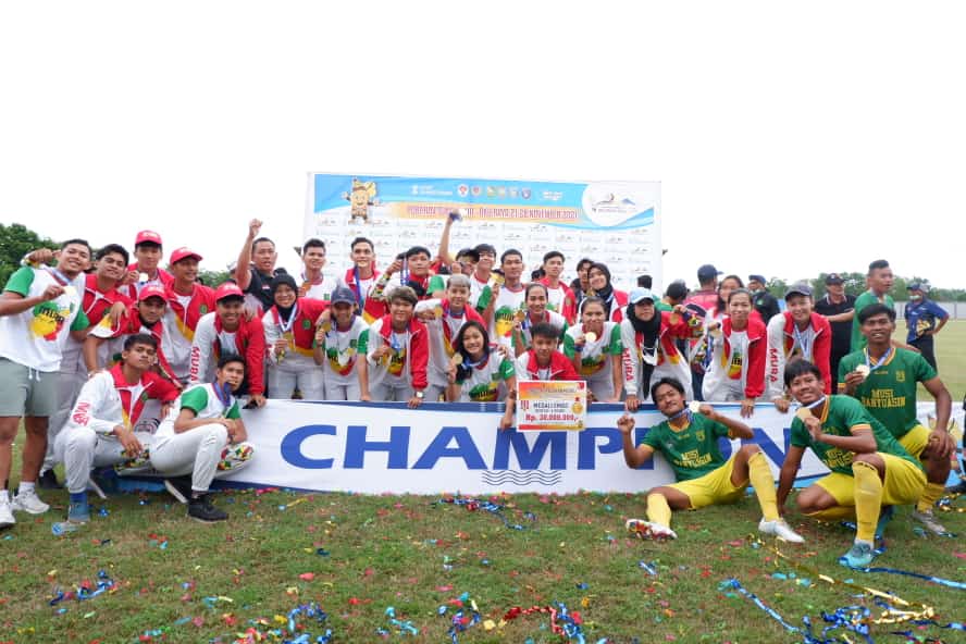 Laskar Mati Dem Asal Top, yang menjadi julukan Tim Sepakbola Kabupaten Musi Banyuasin meraih gelar champion setelah pada partai final berhasil mengalahkan Kabupaten Muara Enim dengan skor 2-0 di Stadion Tebat Sari Kota Martapura Kabupaten OKU Timur, Sabtu (27/11/2021).