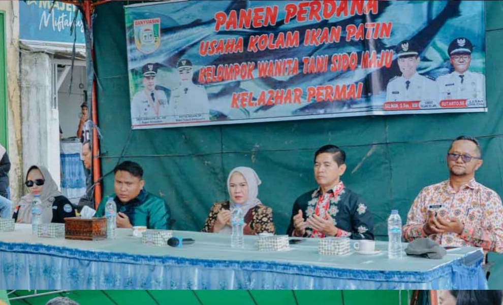 Sumsel Merdeka – Banyuasin, Ketua DPRD Kabupaten Banyuasin, Abdul Rais, S.M., menghadiri kegiatan panen perdana kolam ikan patin milik Kelompok Wanita Tani (KWT) Sido Maju di Kelurahan Azhar Permai, Kecamatan Talang Kelapa, Kabupaten Banyuasin, Senin (13/10/2025).